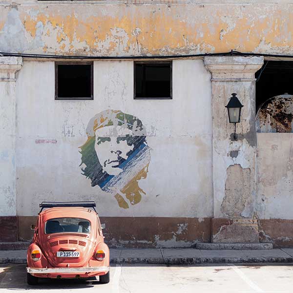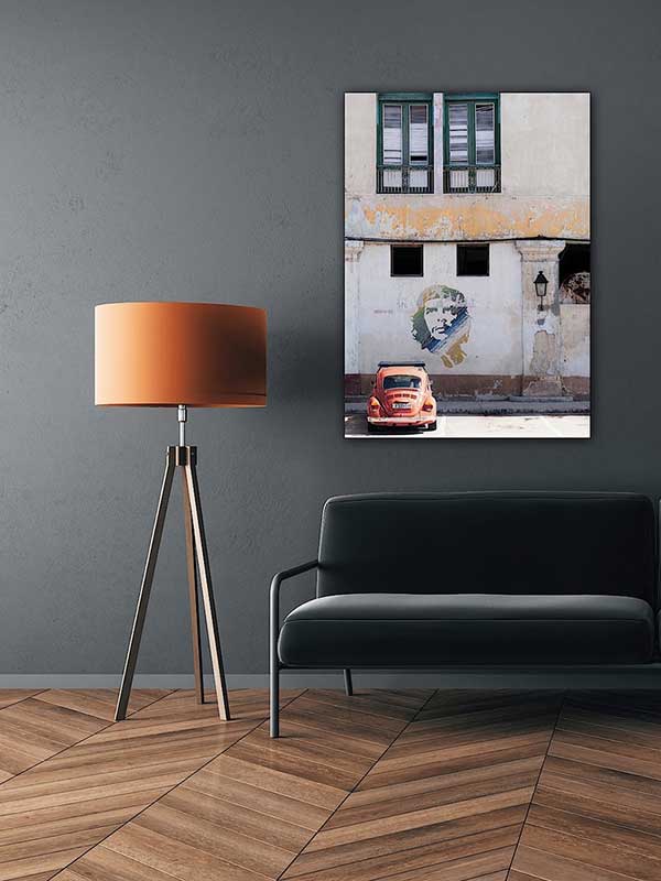 VW Käfer und Che Guevara – ein besonderer Zeitgeist Havannas! Als Druck auf Alu Dibond Butlerfinish Silber in verschiedenen Formaten erhältlich.