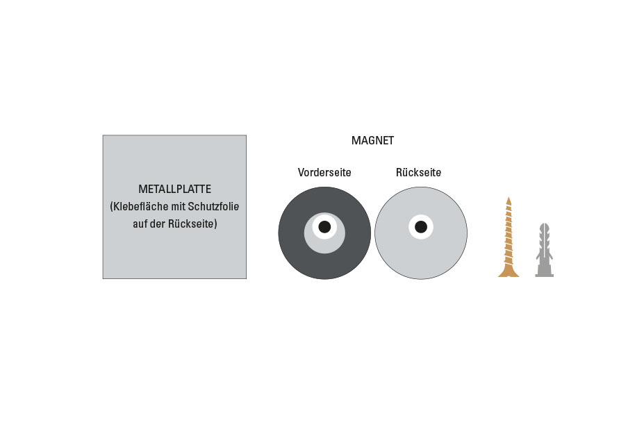 • 1 Magnet für Wandbefestigung bis Grösse 50 cm x 50 cm